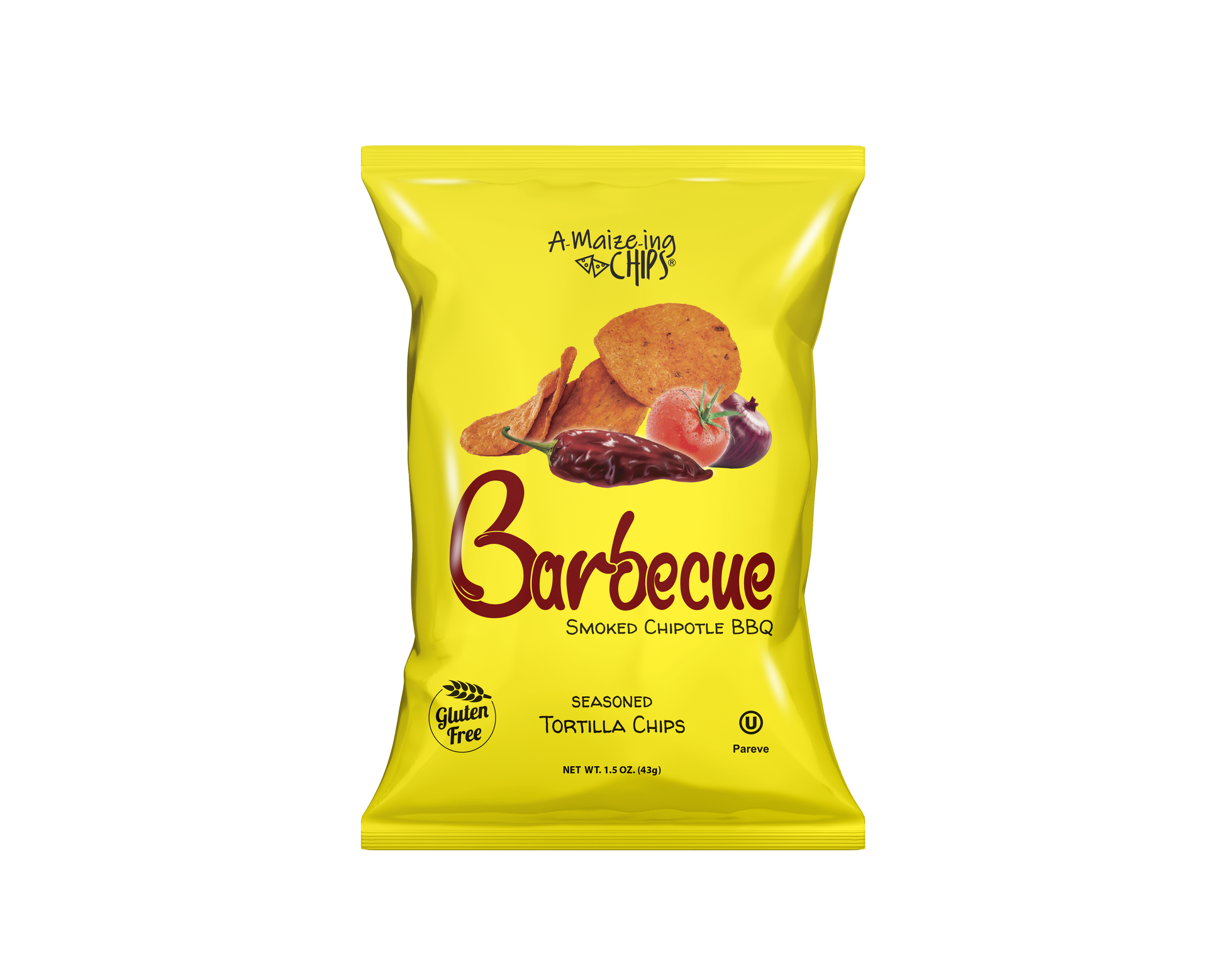 A-Maize-ing Chips Chipolte BBQ flavored tortilla chips are made with 100% white corn and flavored with Smoked Chipolte BBQ. These chips offer a great crunch and the perfect amount of flavor. Available in 10, 15, 25 or 48 packs. Each bag is 1.5oz and a perfect snack.